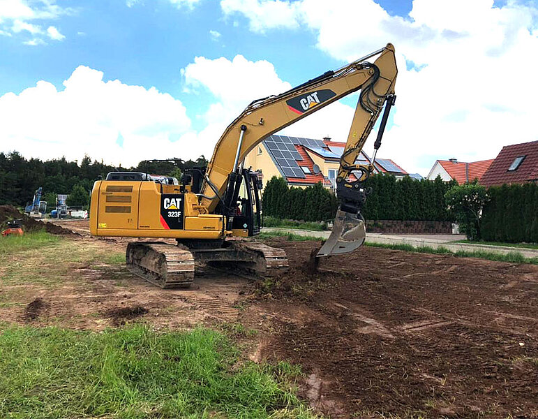 Unsere Bagger: CAT 323F und Takeuchi TB250 auf Nachtbaustelle